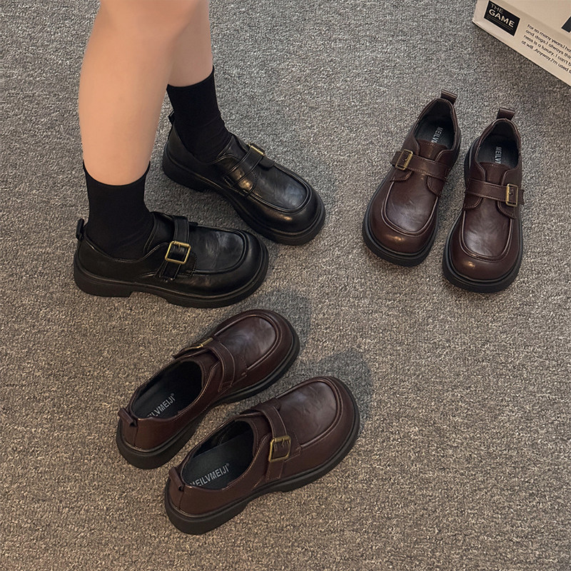 小桃同款真美诗自由之歌秋季新款水洗牛皮棕色复古小皮鞋乐福鞋女
