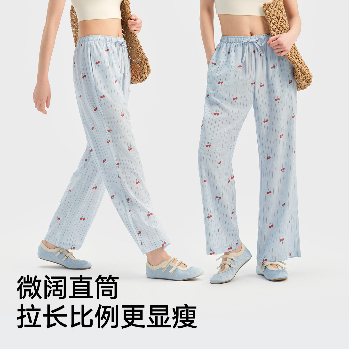 松山棉店休闲梭织女士长裤直筒家居裤女柔软莱赛尔透气轻薄不闷热