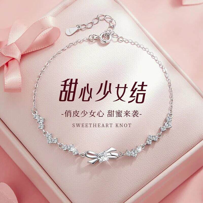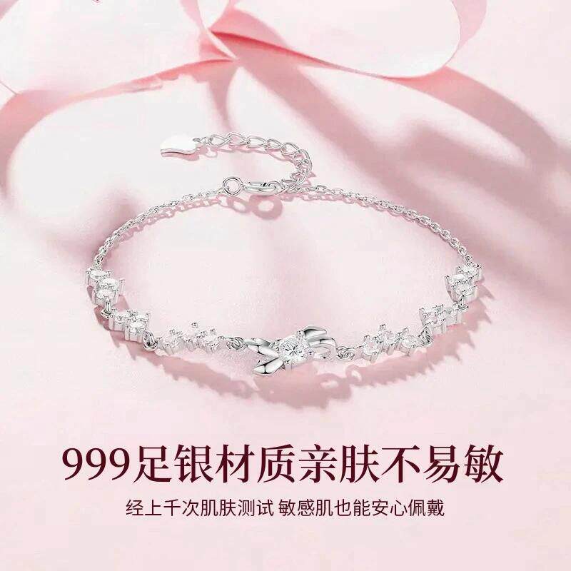 幂琳新款蝴蝶结纯银女款手链轻奢小众甜心b少女结手镯礼物送足银