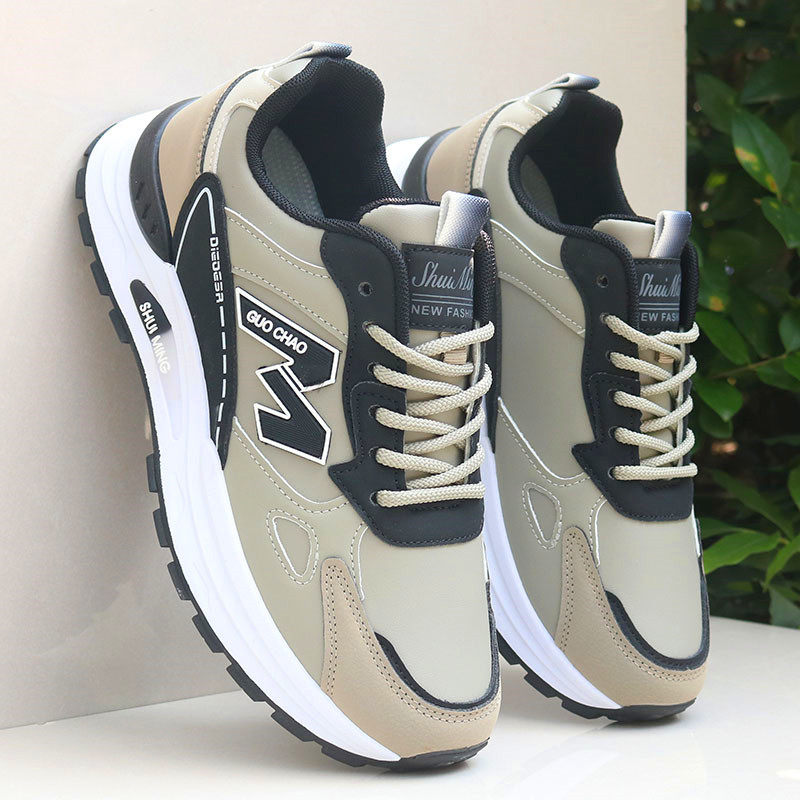 时尚蜘蛛王男鞋秋冬季皮面防水运动鞋男2026新款跑步旅游鞋子男士