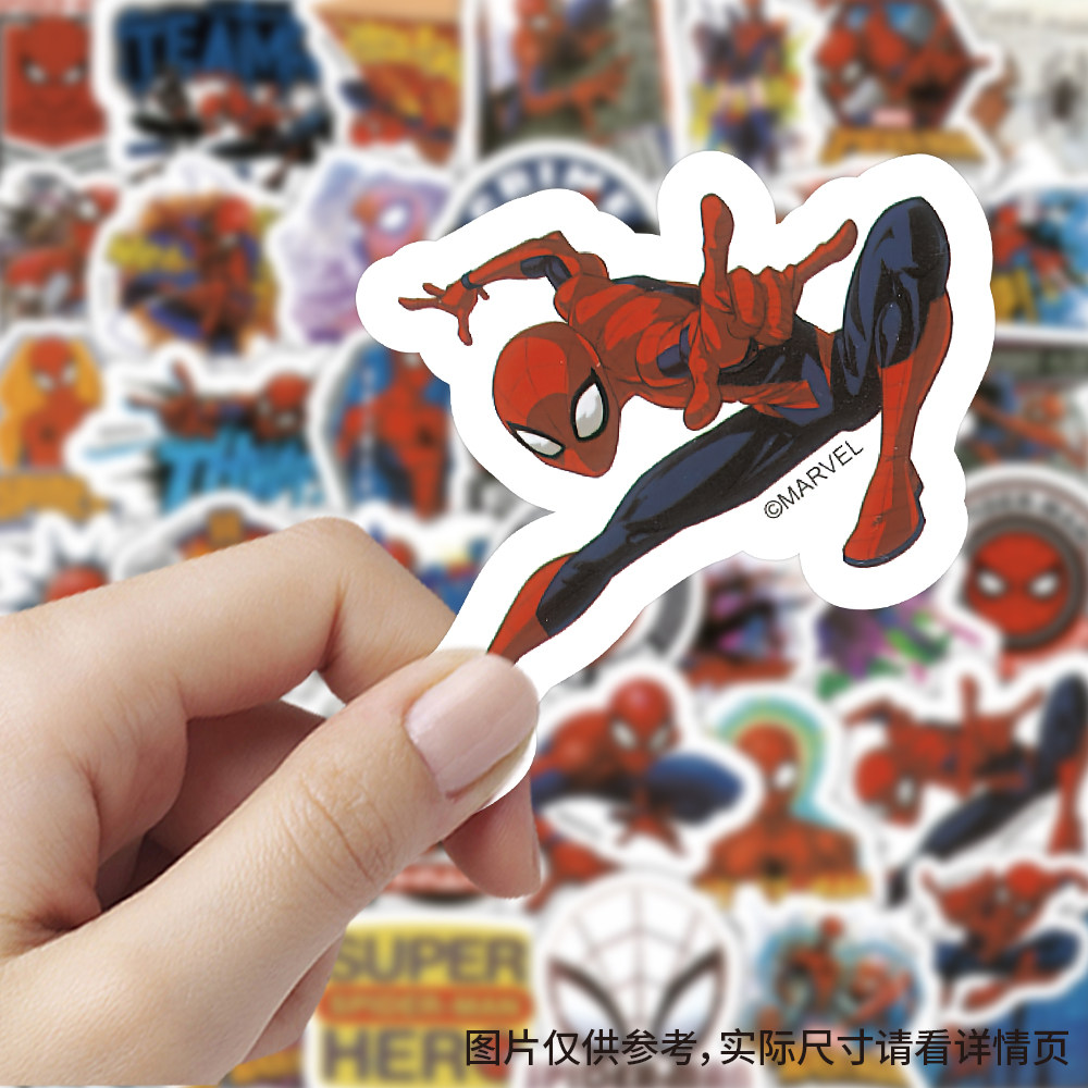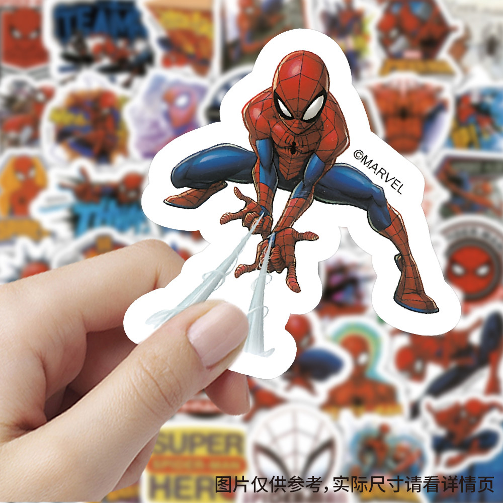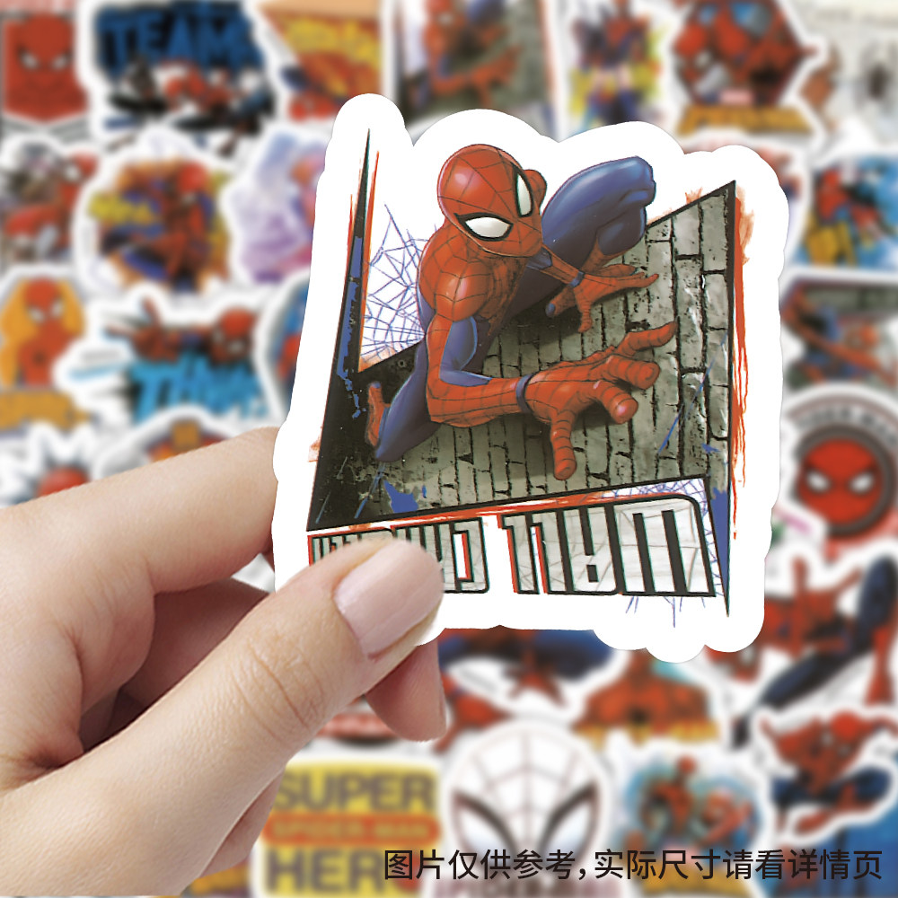 100张蜘蛛卡通侠贴纸创意ins风素材标签自粘装饰手账防水行李箱dy