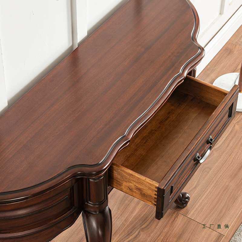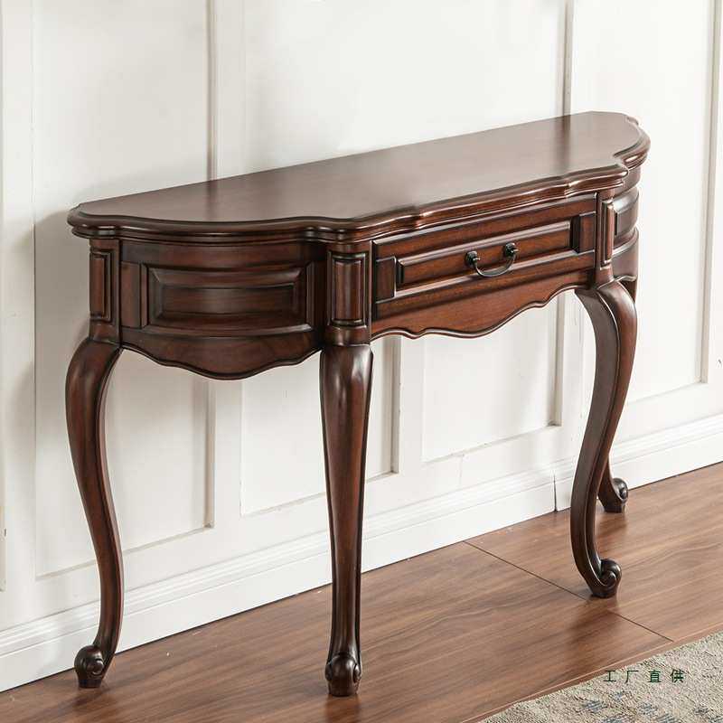 美式全实木玄关桌半圆玄关台欧式沙发背几门厅玄关柜复古靠墙供桌