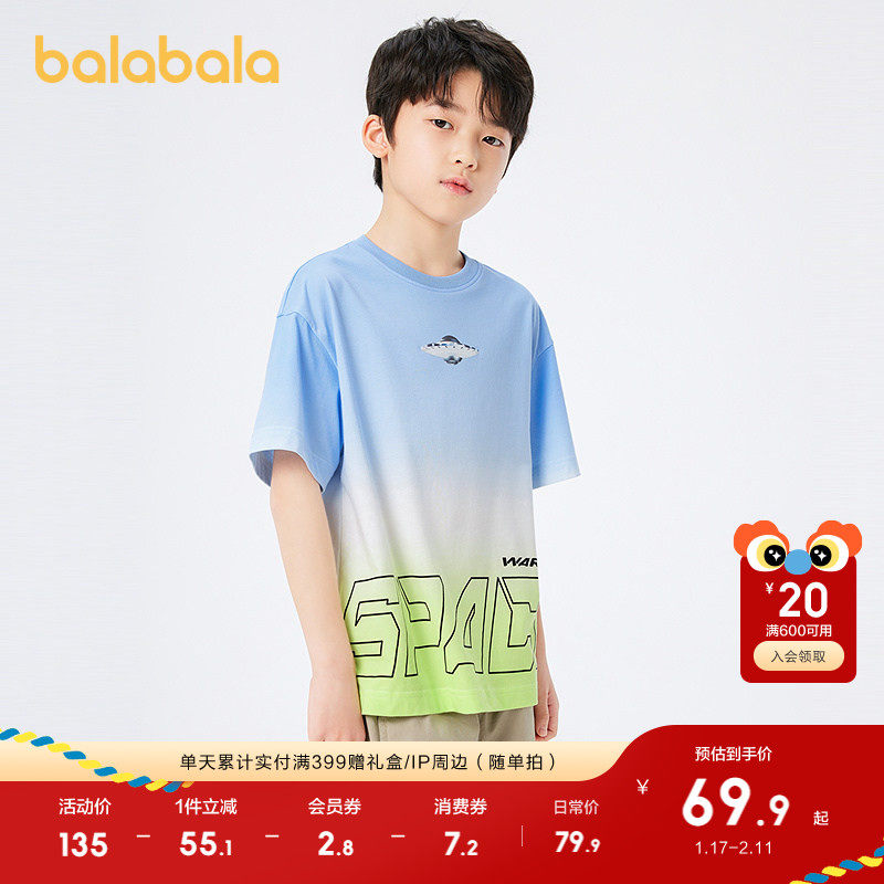 巴拉巴拉儿童短袖夏装打底衫男童t恤中大童印花渐变速干上衣凉感
