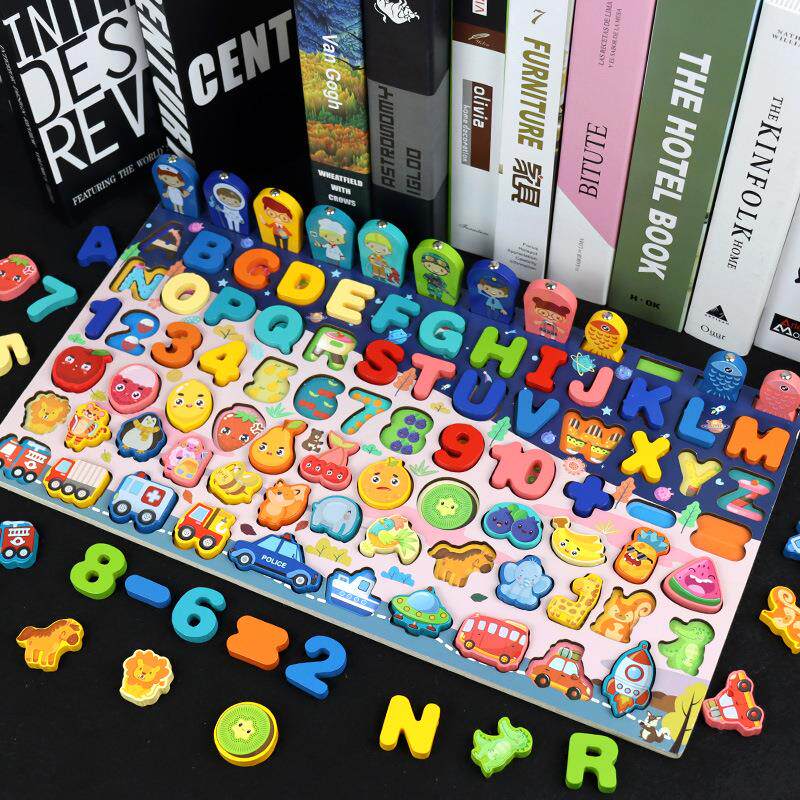 多功能磁性钓鱼对数板幼儿园儿童早教木质拼图拼板认知串串珠玩具