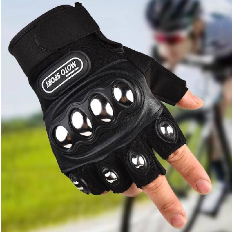 摩托车骑行手套男士夏季透气机车电动车防护装备防寒防滑红色半指