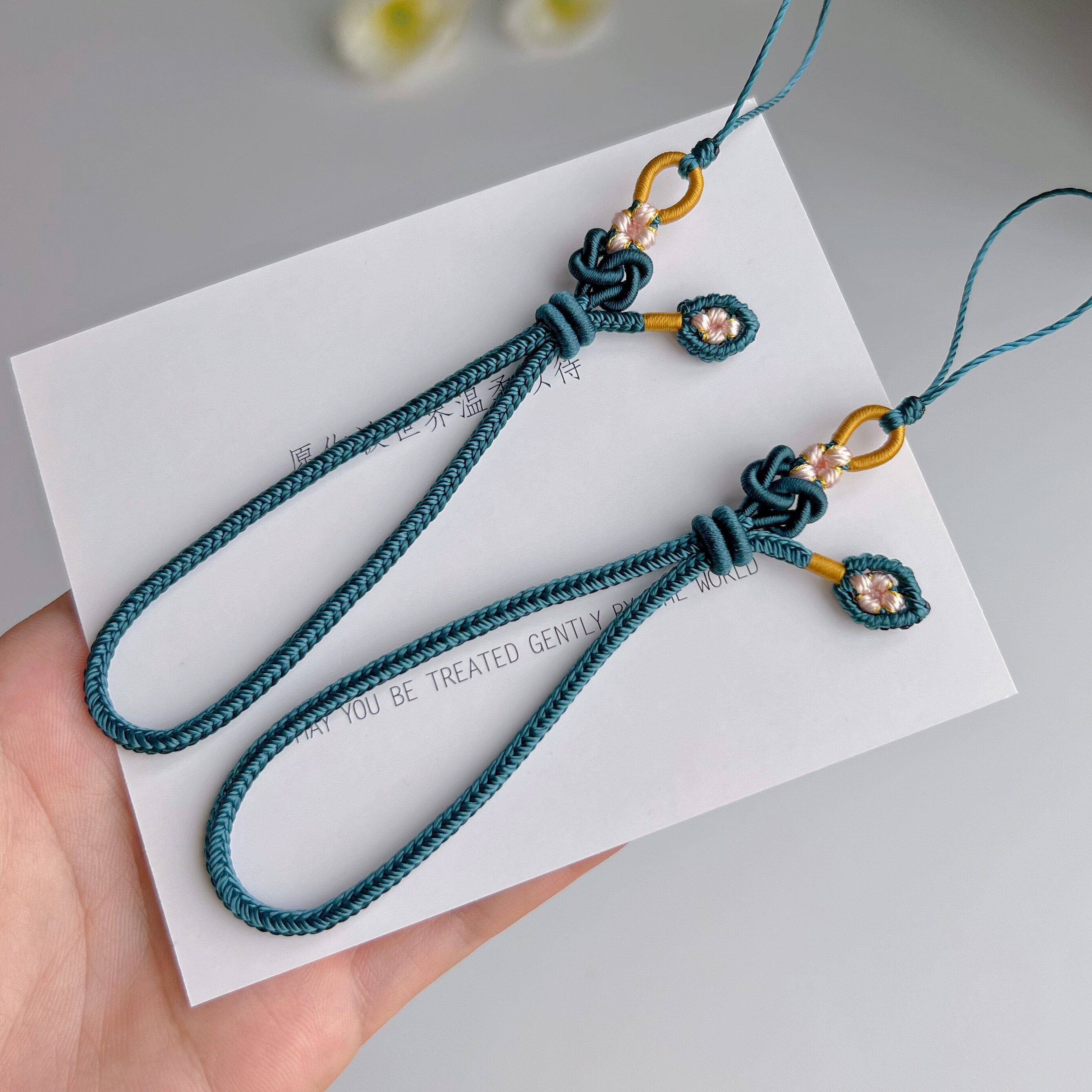 手机挂件八股辫同心结桃花钥匙扣挂件四股辫手工编织