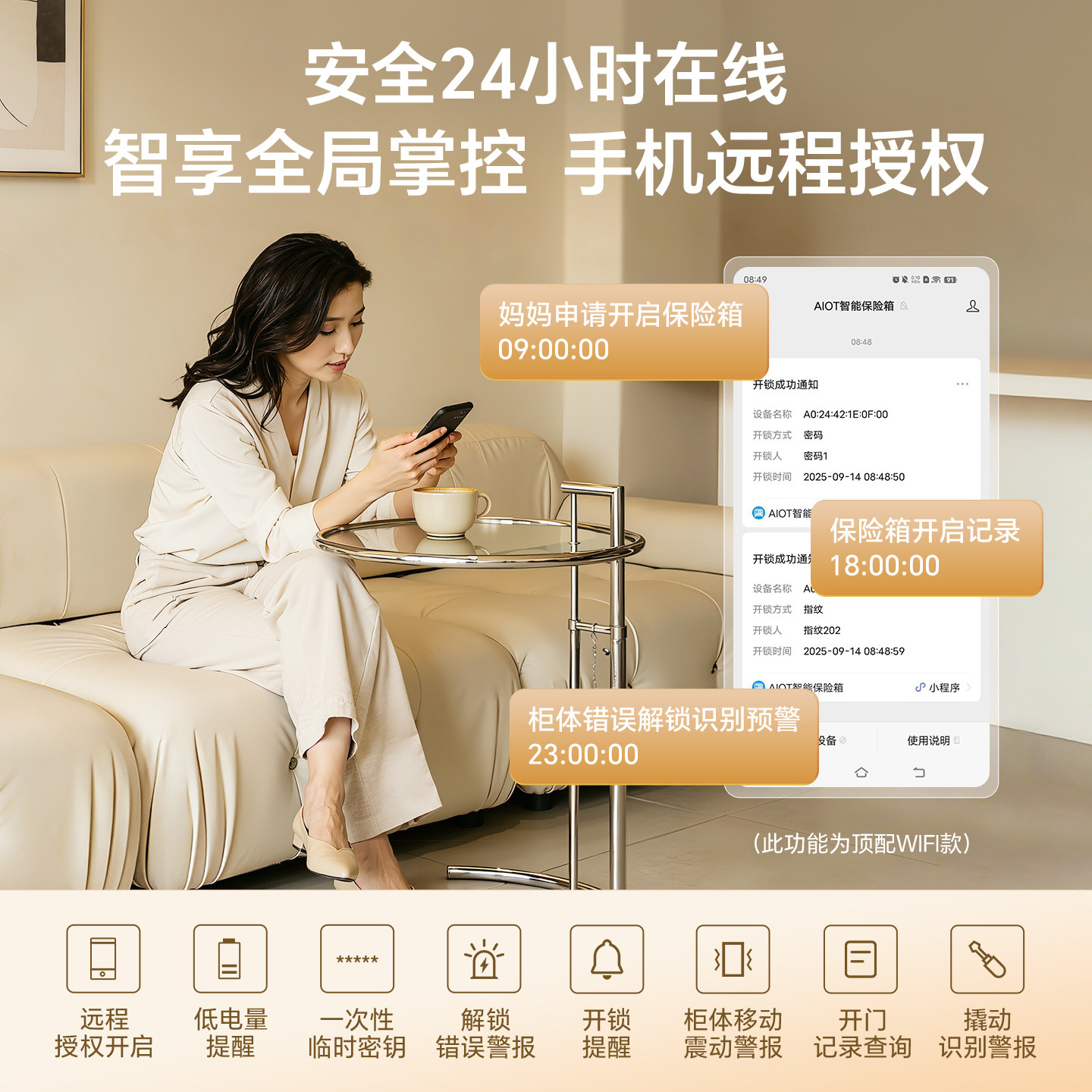 【C级锁芯国标CSP认证】虎牌保险柜家用小型保险箱2026新款家庭存钱全钢搬不走智能指纹密码办公室床头柜一体