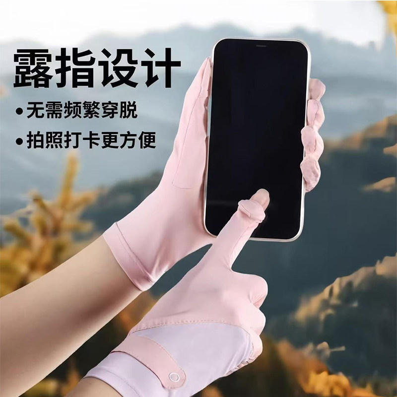 防晒手套女防紫外线冰丝露二指夏季户外电动车骑行开车手套女薄款