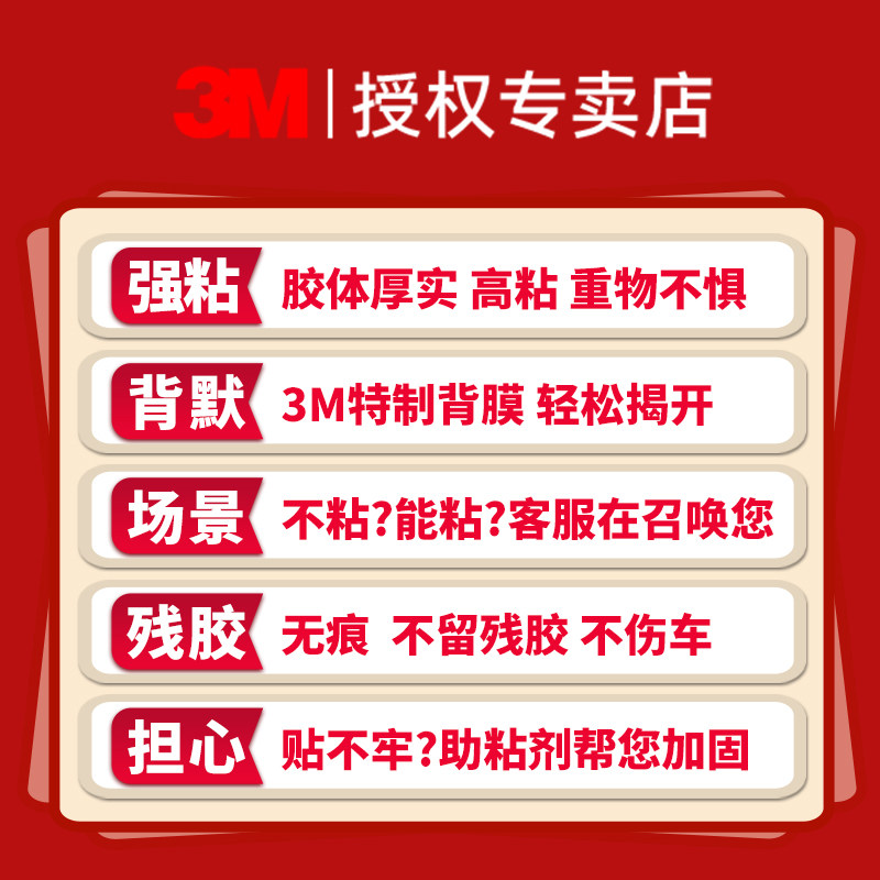3M强力双面胶黑色加厚VHB高粘度防水免打孔固定墙面无痕贴耐高温汽车专用摆件支架万能胶粘贴片泡沫海绵胶带