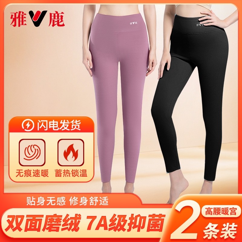 雅鹿保暖裤女士加绒德线裤棉裤发热自暖宫内穿打底裤衬裤秋裤冬季