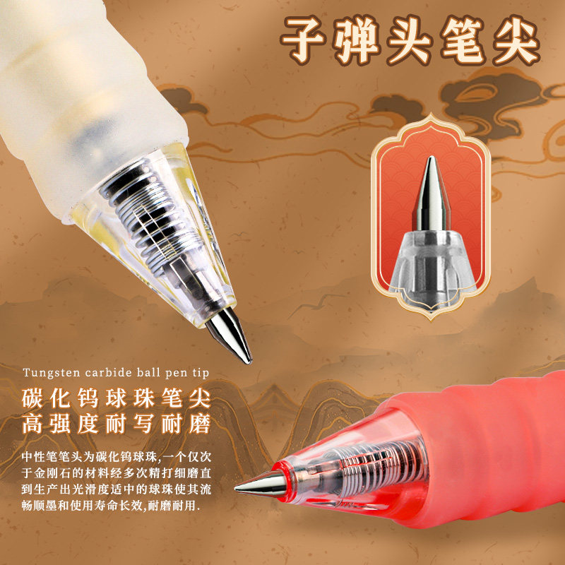 国风桶装刷题笔速干顺滑黑笔高颜值按动中性笔ST0.5黑色笔芯水性圆珠笔小学生专用考试笔非按斤卖碳素签字笔