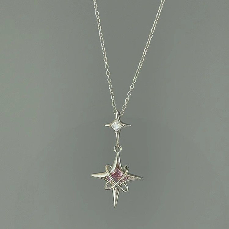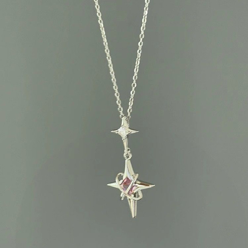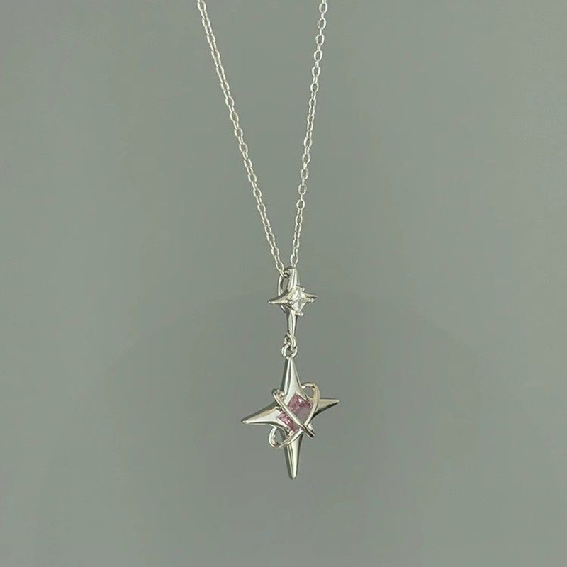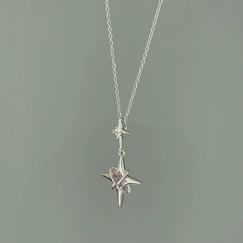「biu boom」中古银色四芒星项链冷淡风小众复古设计感超闪锁骨链