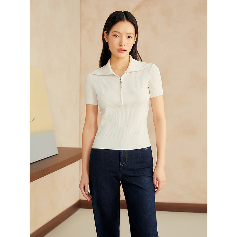 【真丝系列】YINER音儿2025夏季新款复古翻领上衣百搭毛针织衫
