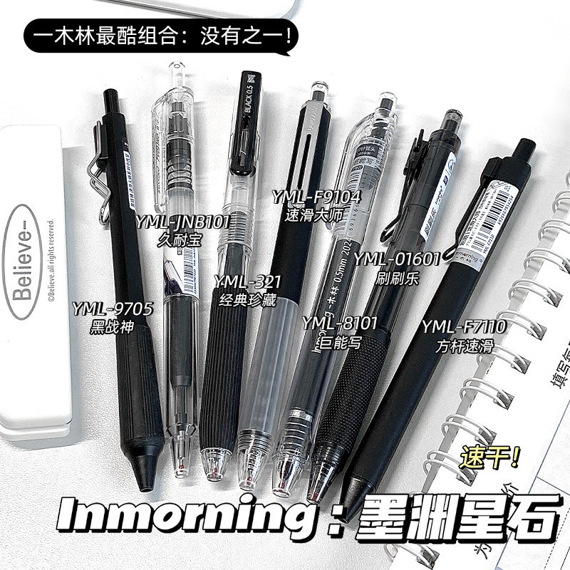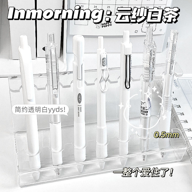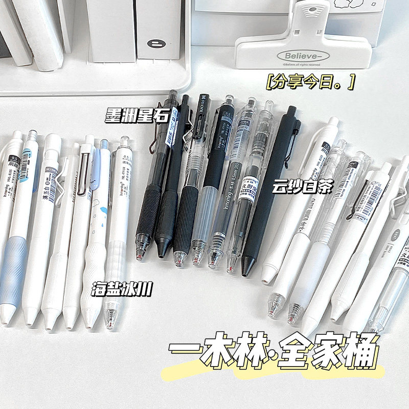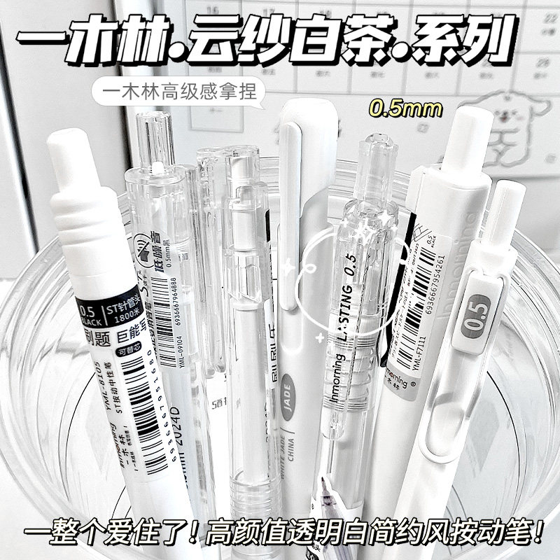 一木林刷题套装按动中性笔ins简约白杆高中小学生用考试刷题笔0.5顺滑ins按动笔简约风学生st笔头顺滑