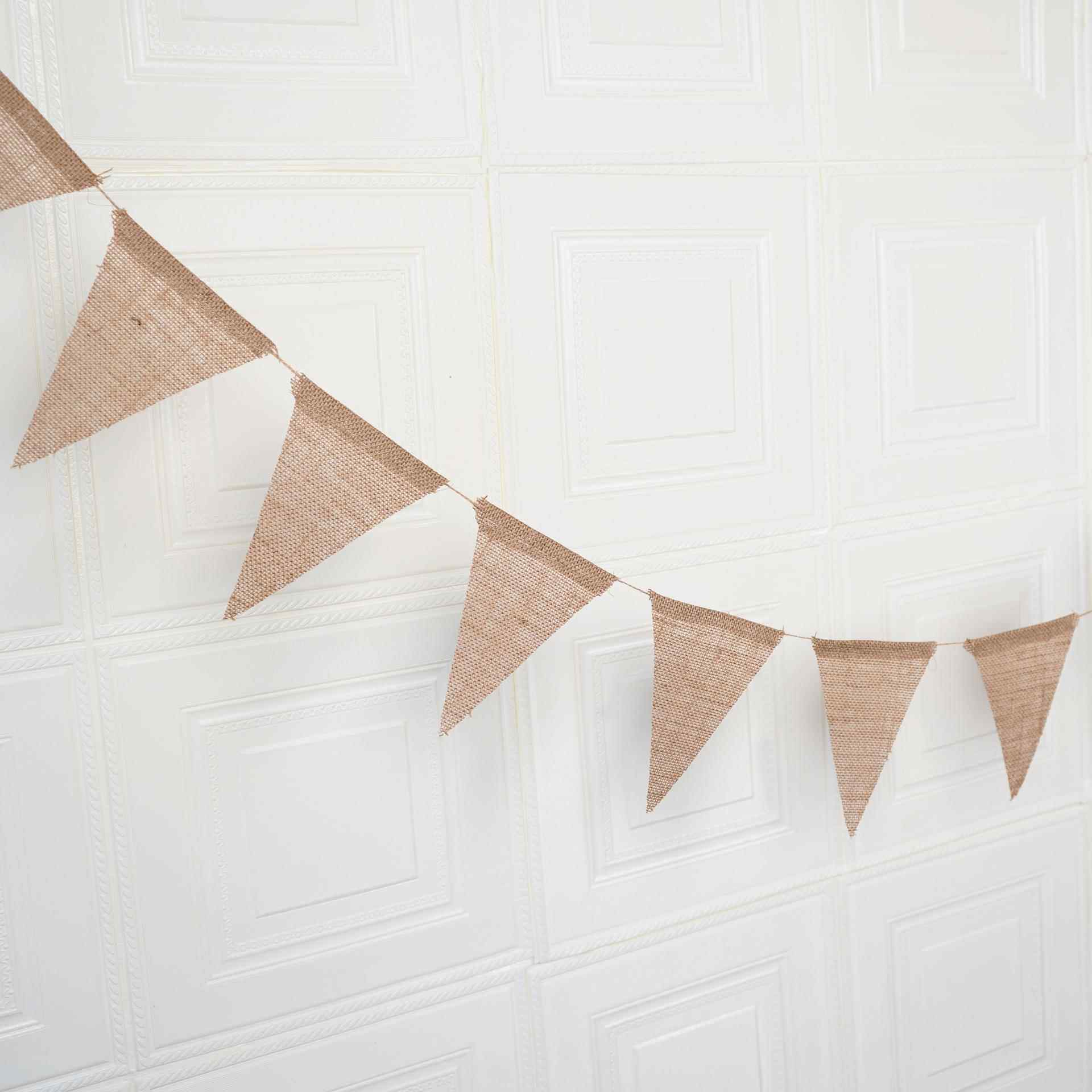 13片黄亚麻布三角旗西式婚礼婚庆串旗露营生日聚会装饰挂旗