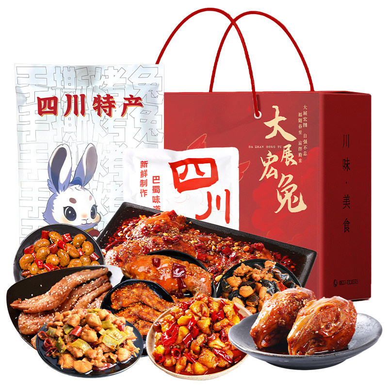 四川自贡冷吃年货特产礼盒麻辣烤兔肉冷吃兔送人礼盒装五香整只