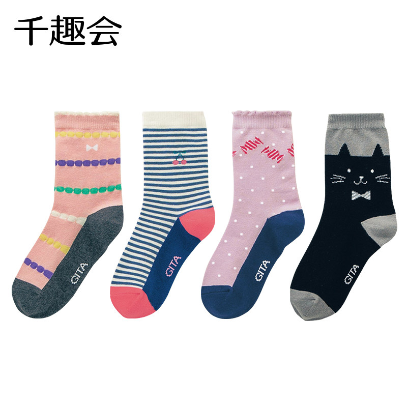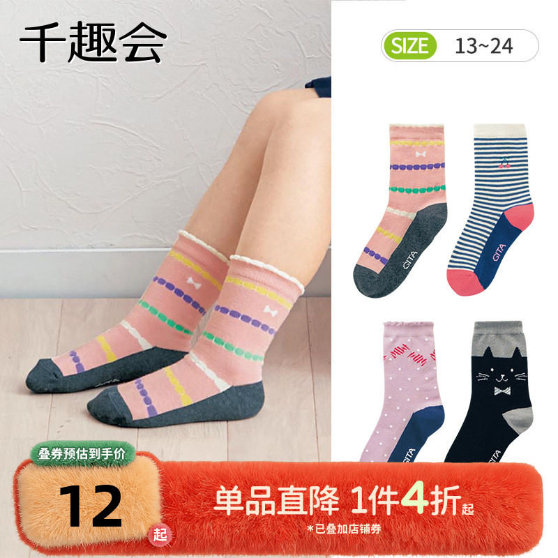 千趣会春夏秋儿童袜中筒袜可爱公主猫咪花边洋气女童宝宝袜子