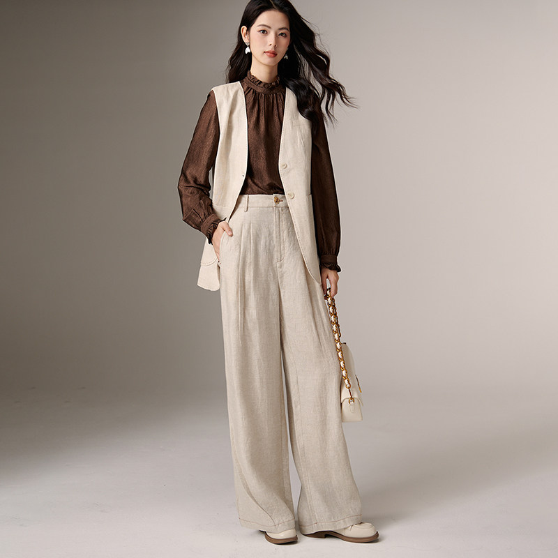 晚白2025秋冬新款莱赛尔亚麻上衣老钱风气质百搭休闲外套马甲女