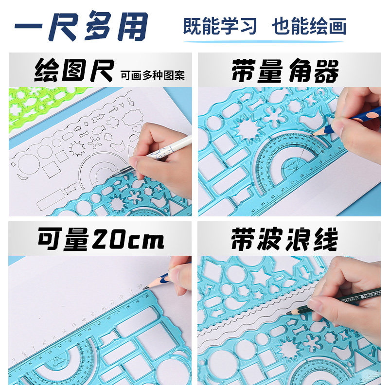 手抄报尺子多功能绘画尺尺子小学生专用直尺形状几何图形尺手抄报模板百变万花尺画画神器套装儿童绘图尺