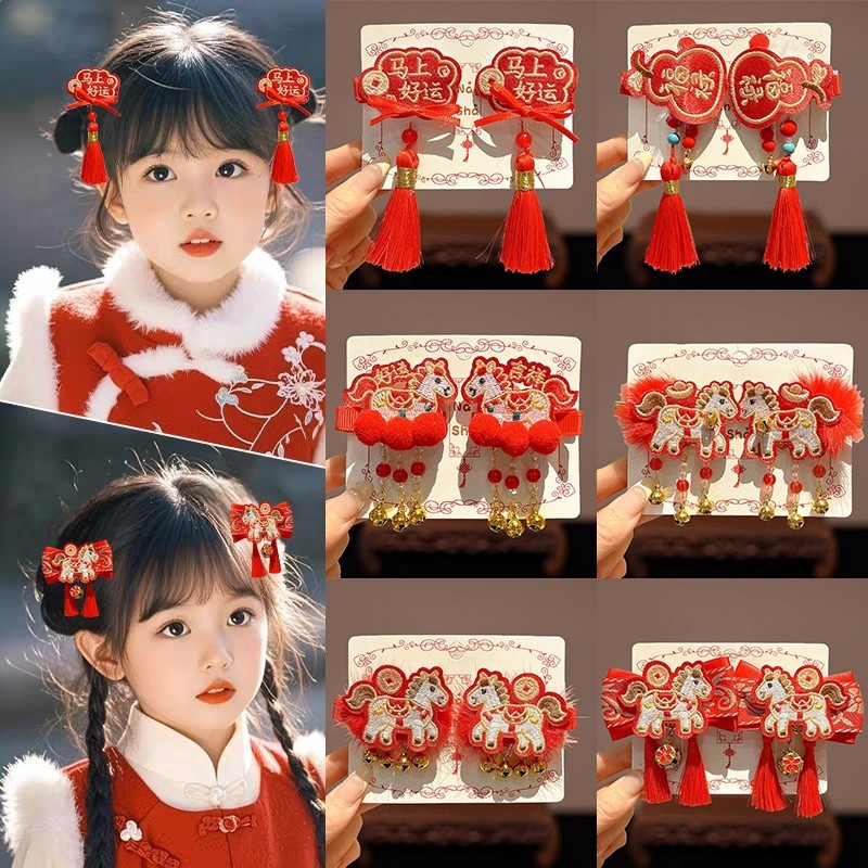 2026马年装饰新年红色古风儿童拜年发夹小女孩发饰汉服过年头饰女