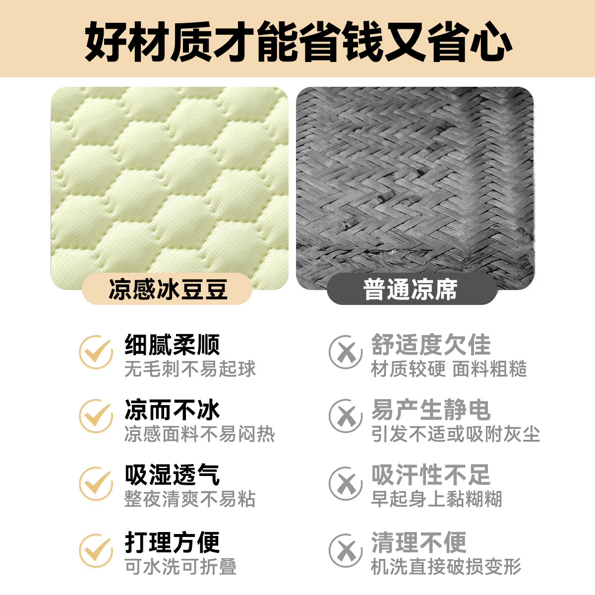 凉席冰豆豆凉感可水洗夏季家用空调席套件学生宿舍单人冰丝软席子