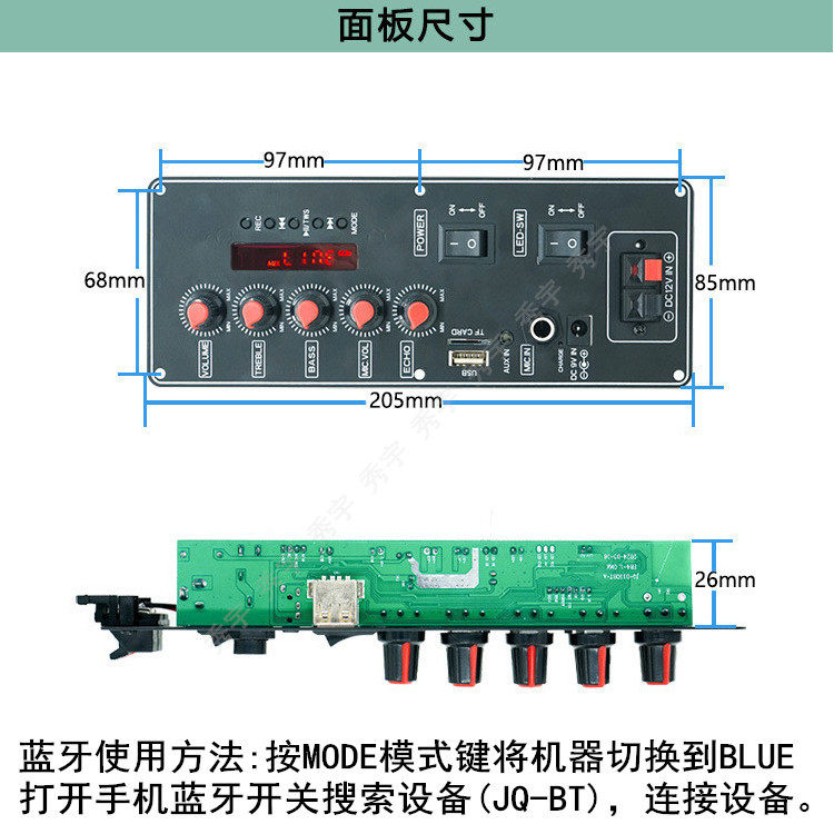 150叫卖机功放板9V广场舞音响K歌主机7.4V锂电池蓝牙扩音器205*85