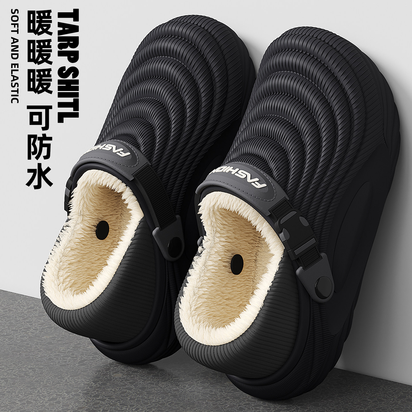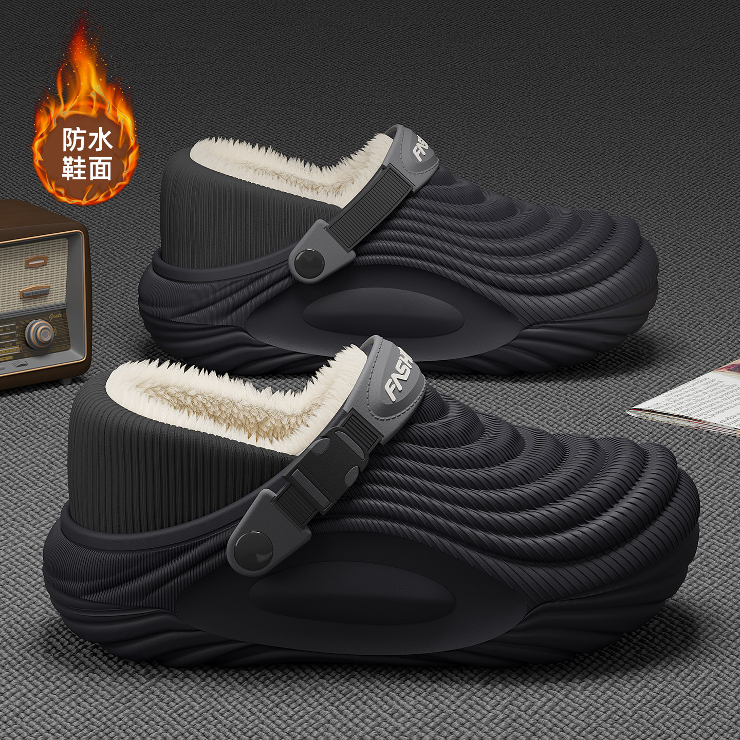 防水男士棉拖鞋冬季包跟2025新款室内家居毛绒绒保暖厚底棉鞋外穿