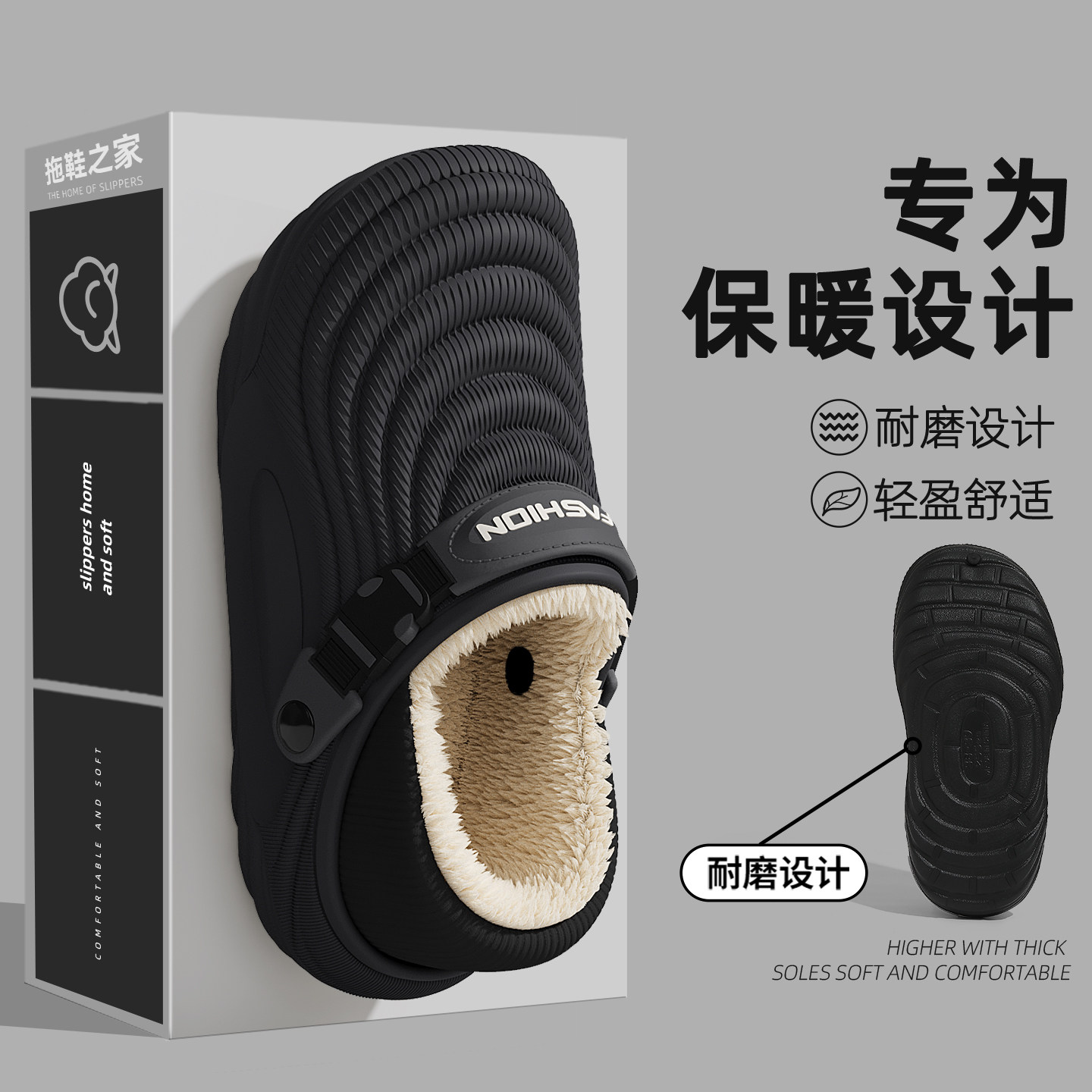 秋冬季2025新款翻半包跟棉拖加绒保暖情侣外穿毛毛绒厚底防滑居家