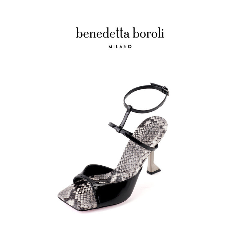 benedetta boroli意大利进口夏季方头设计感细带女士高跟凉鞋LUCE