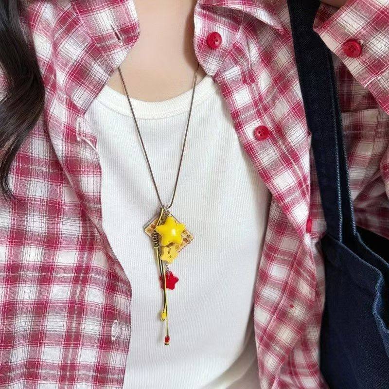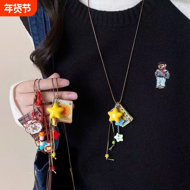 多巴胺星星吊坠项链女2025新款小众设计感可爱卡通长款毛衣链配饰