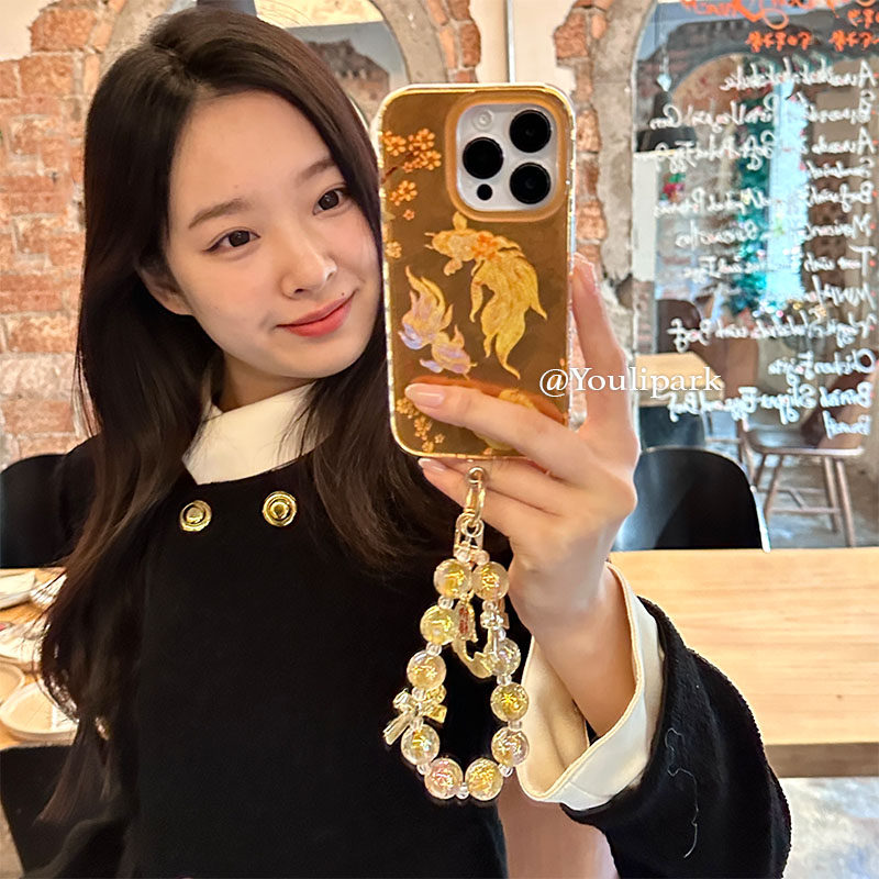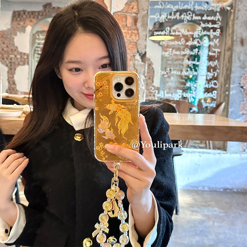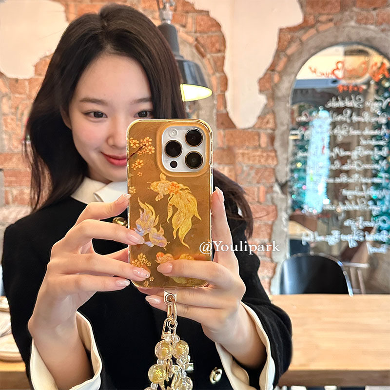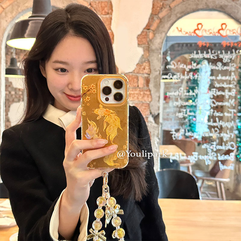 由里公园ins小众新年好运发财金色锦鲤挂绳15适用16pro苹果16ProMax手机壳iPhone16全包14新款14Promax保护套