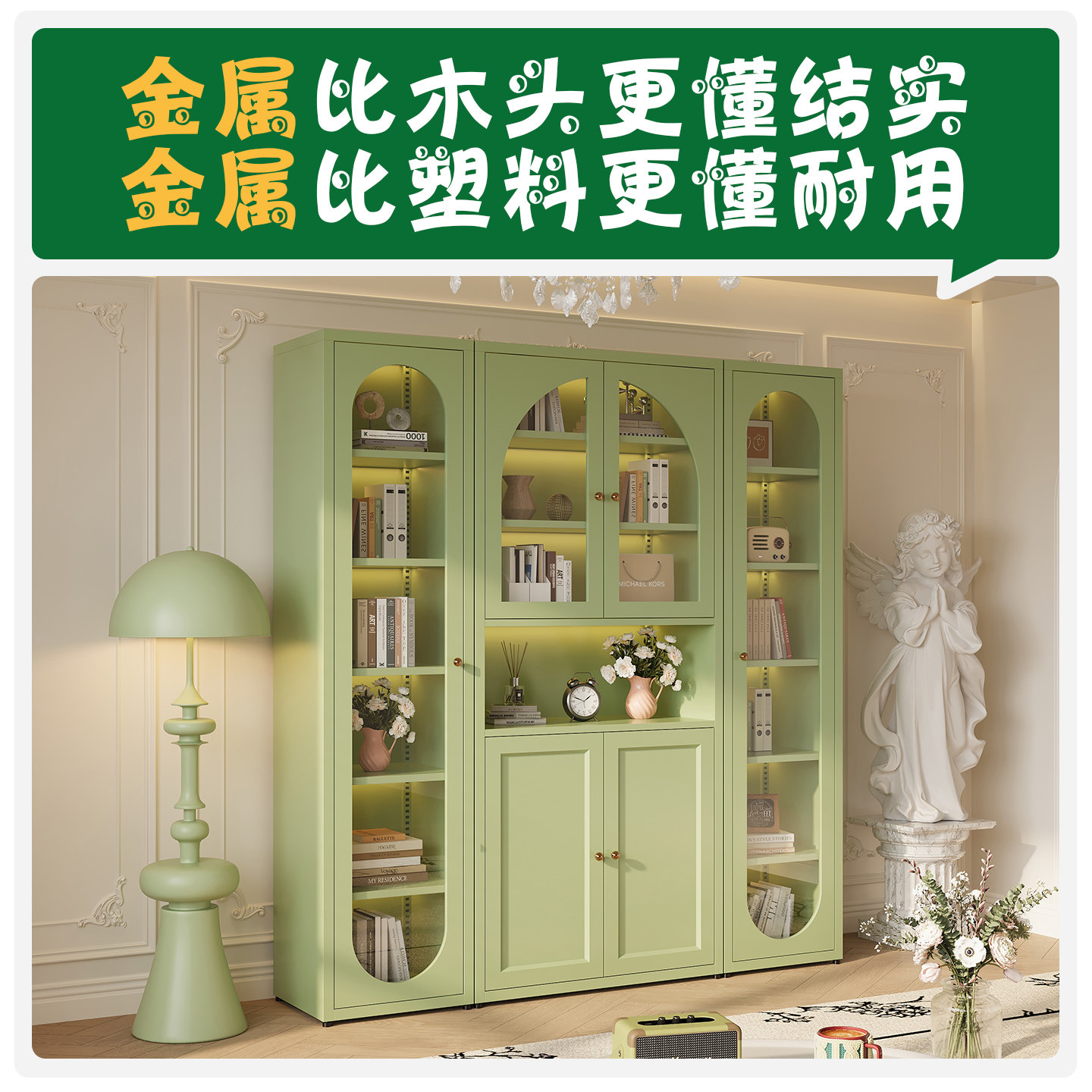 新款法式无甲醛铁艺书柜书架现代家用客厅玻璃防尘带门收纳展示柜