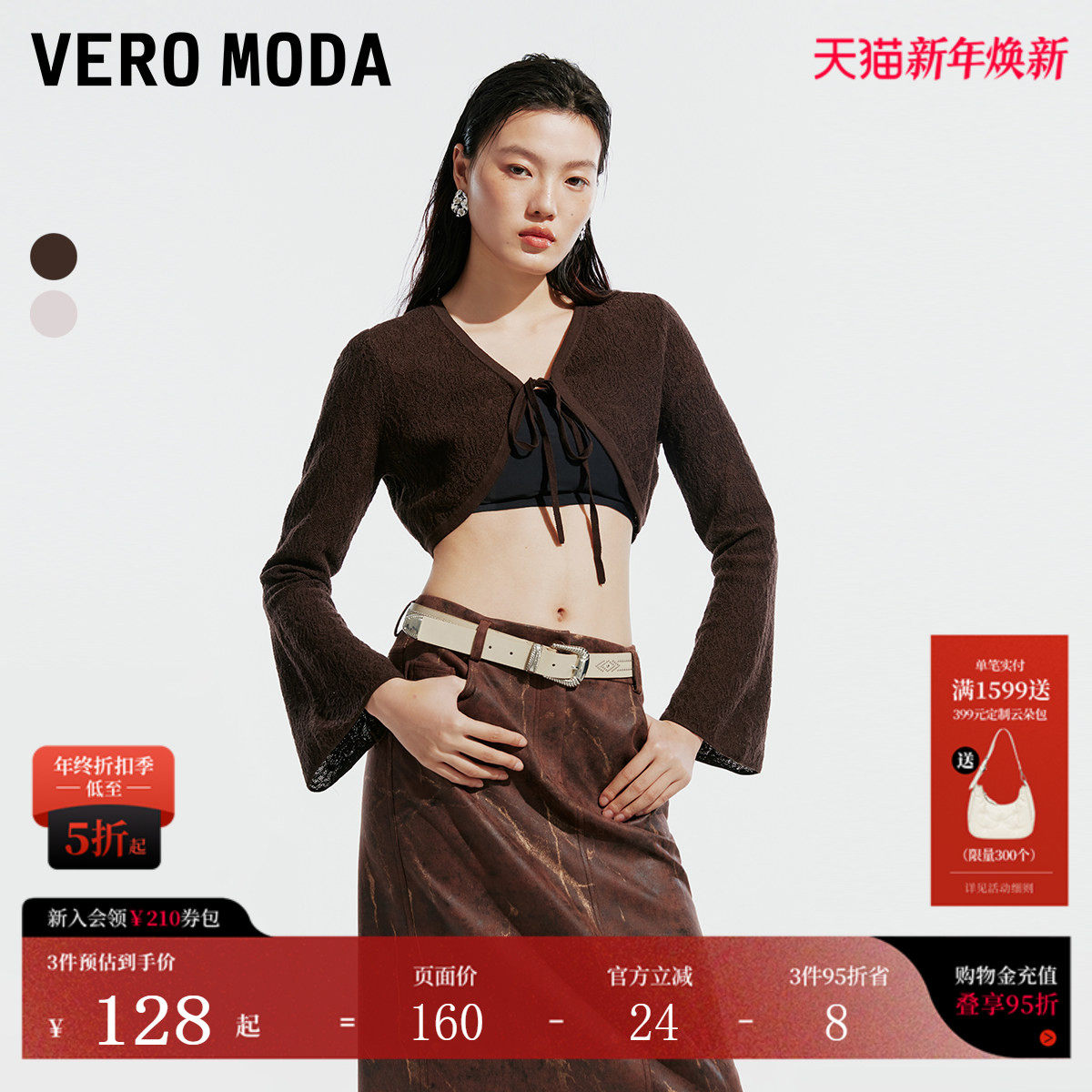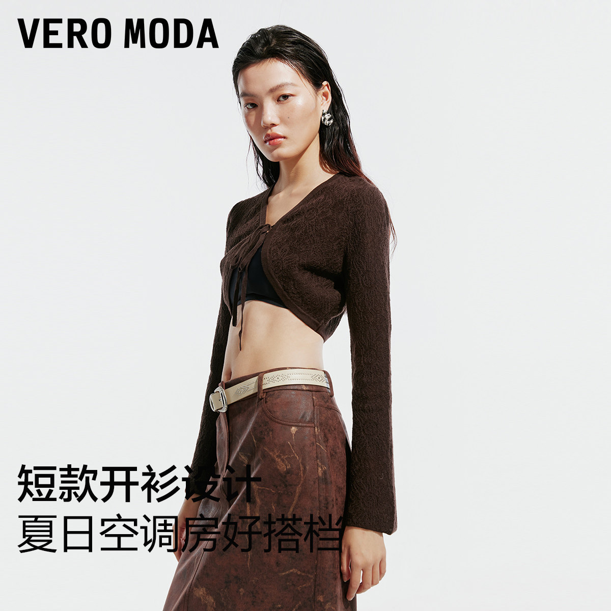 短款开衫设计,花朵纹理感面料