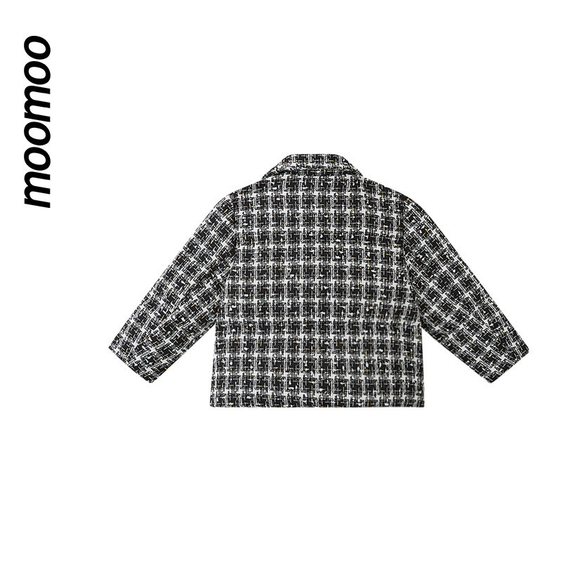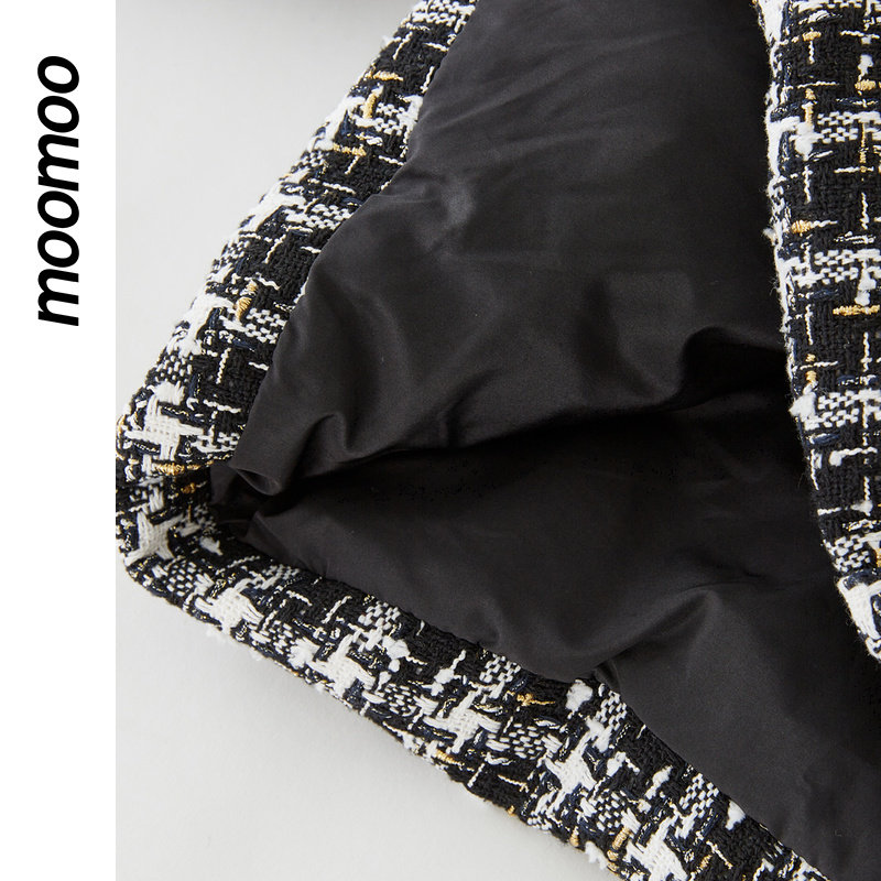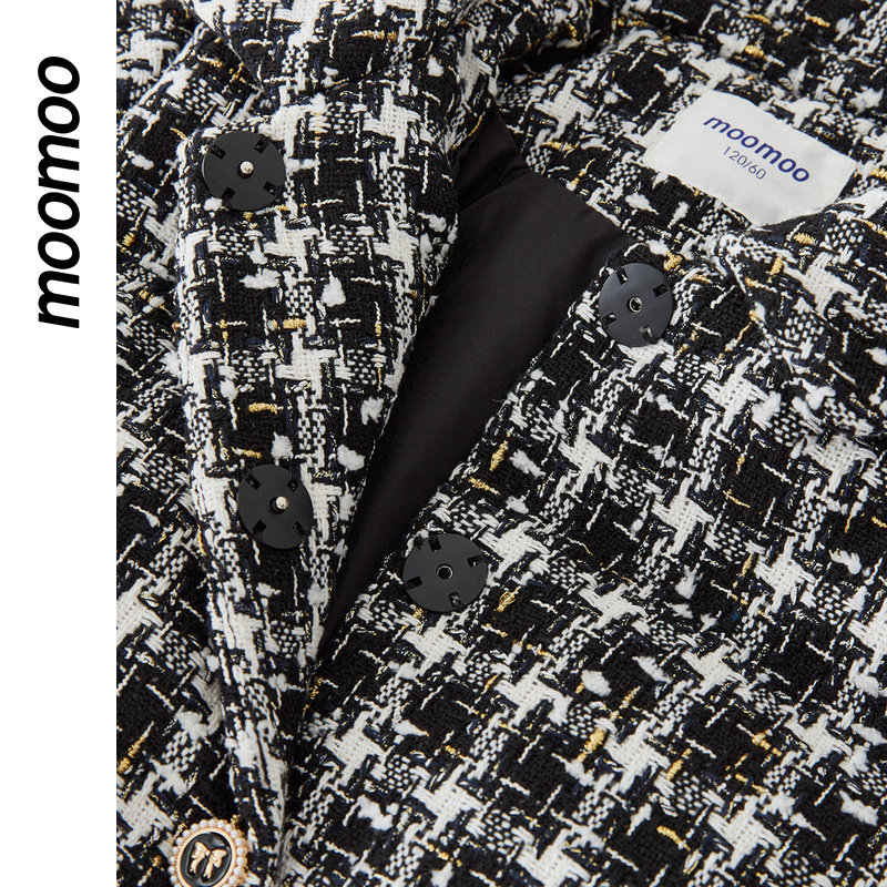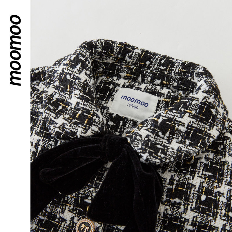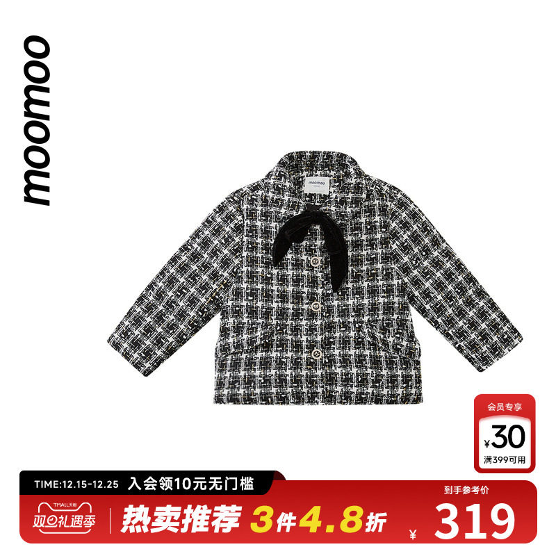 moomoo童装女精致短款羽绒服小香风花纱鸭绒宽松蝴蝶领结外套秋冬