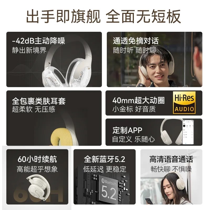 HAYLOU S35头戴式护耳耳机ANC主动降噪无线蓝牙手机电脑通用带麦