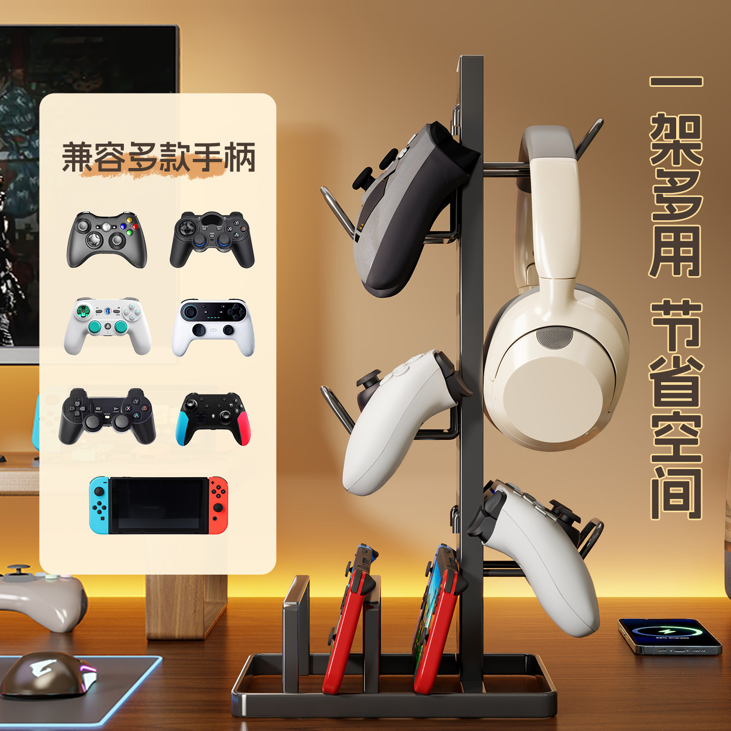 游戏蓝牙耳机耳麦挂架switch游戏机多层展示架多功能可调节悬挂架