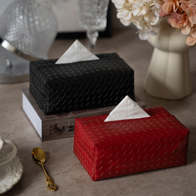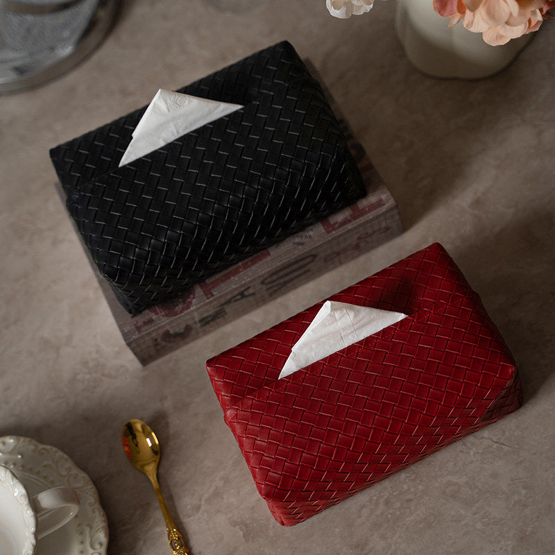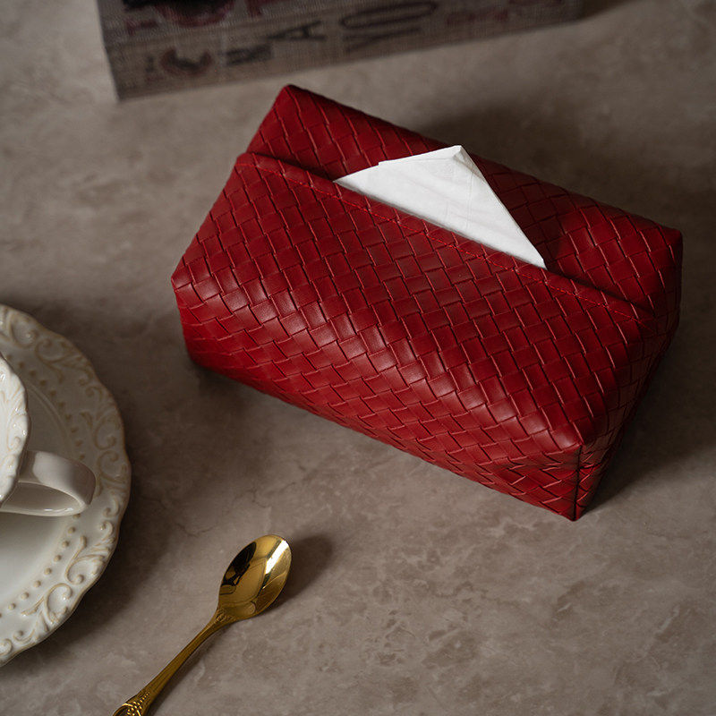 2026年新春红色轻奢高级感编织纹皮质纸巾盒结婚喜庆客厅抽纸盒子