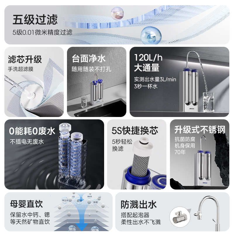 史蒂夫净水器直饮家用厨房台式自来水龙头过滤器净化器净水机新款