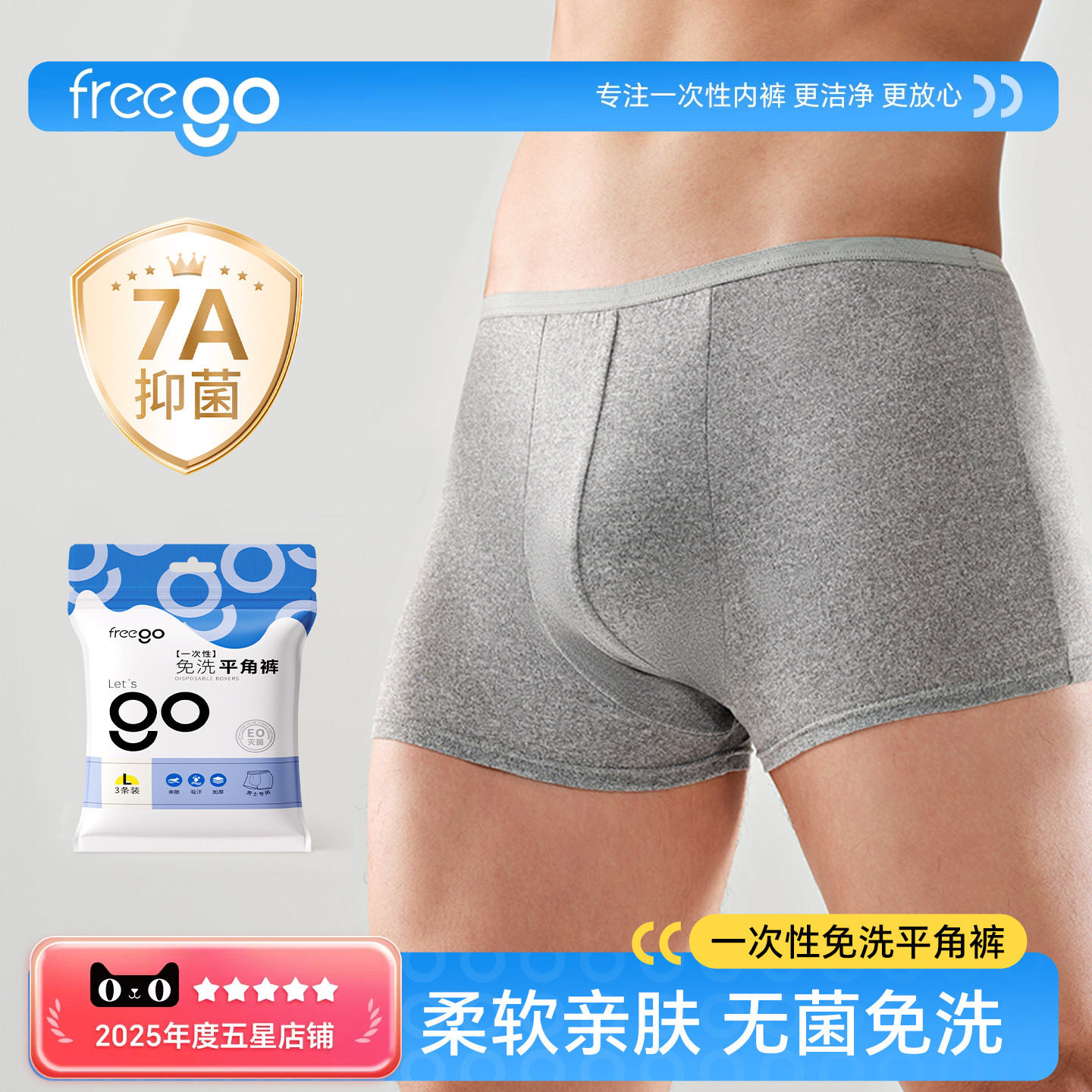 Freego一次性内裤男士纯棉灭菌平角日抛大码旅行用品四角三角短裤