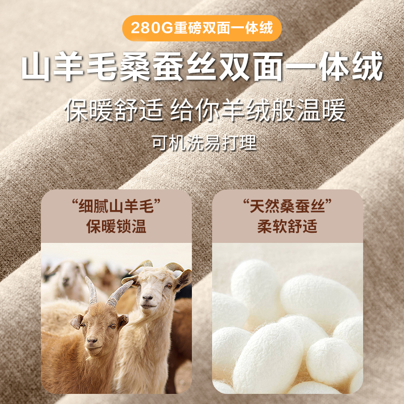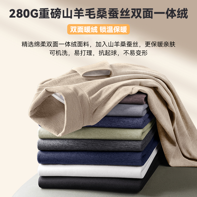 猫人羊毛桑蚕丝加绒德半高领长袖T恤男款秋季新款保暖内搭打底衫