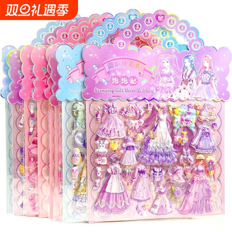 儿童贴纸男女孩公主卡通贴画3d立体泡泡粘书幼儿园小礼品开学礼物