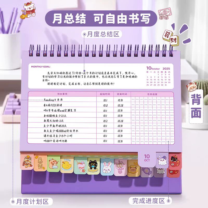 2026年台历新款办公室日历记事本工作月自律打卡每日计划本考研台式桌面摆件备忘录2025下半年到创意月历年历
