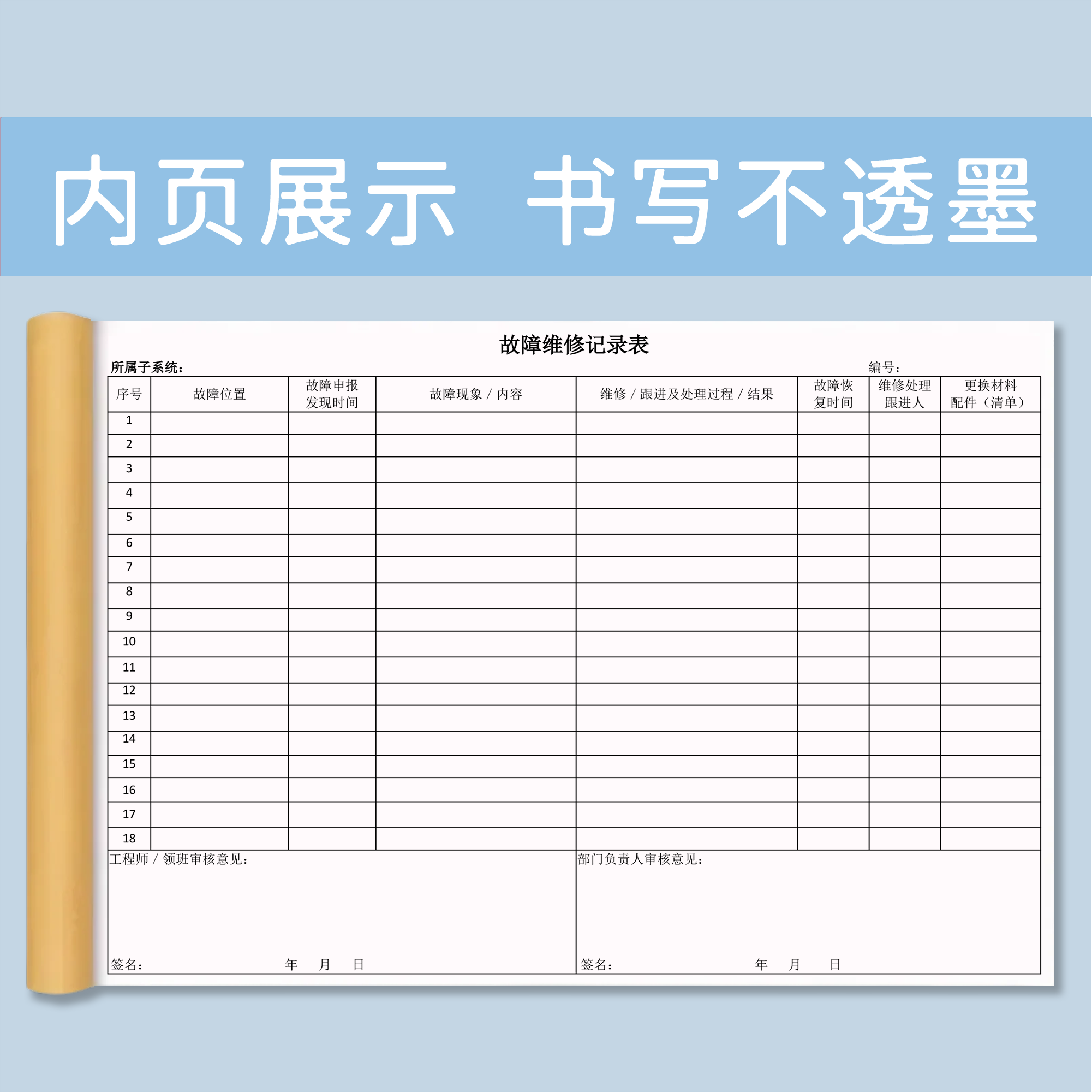 设备保养故障维修记录表建筑消防设施台账防火设备问题登记本小区物业住宅保修施工安全检查故障维修记录本