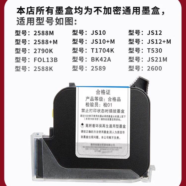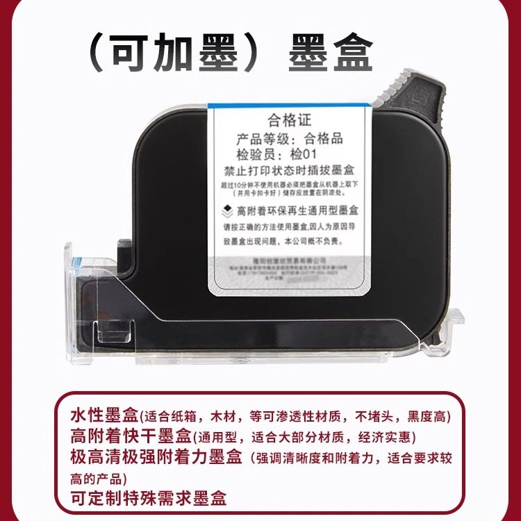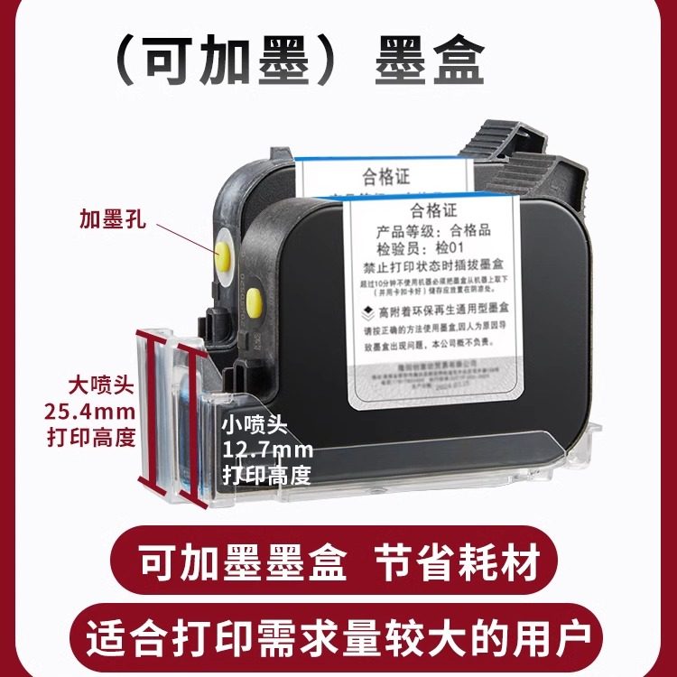 旺德玖高附着力可加墨可定制手持式喷码机专用快干墨盒 通用不加密原装喷头一体式在线手持通用快干墨盒