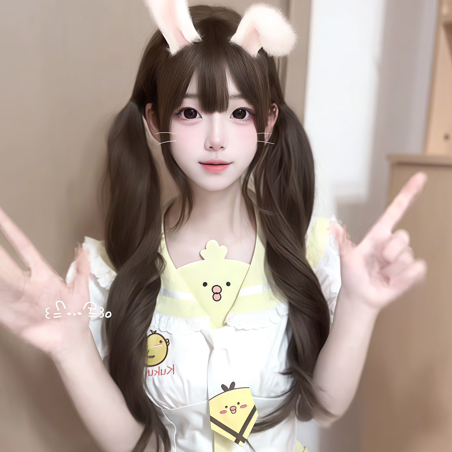 小熊奈奈喵喵岛假发女水母头公主切双马尾长卷发Lolita假发全头套