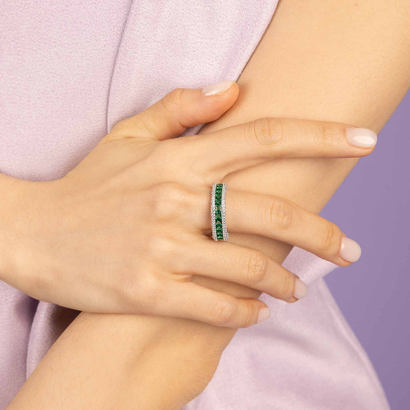APM Monaco绿色密镶戒指手饰撞色混搭现代独特摩登设计生日礼物