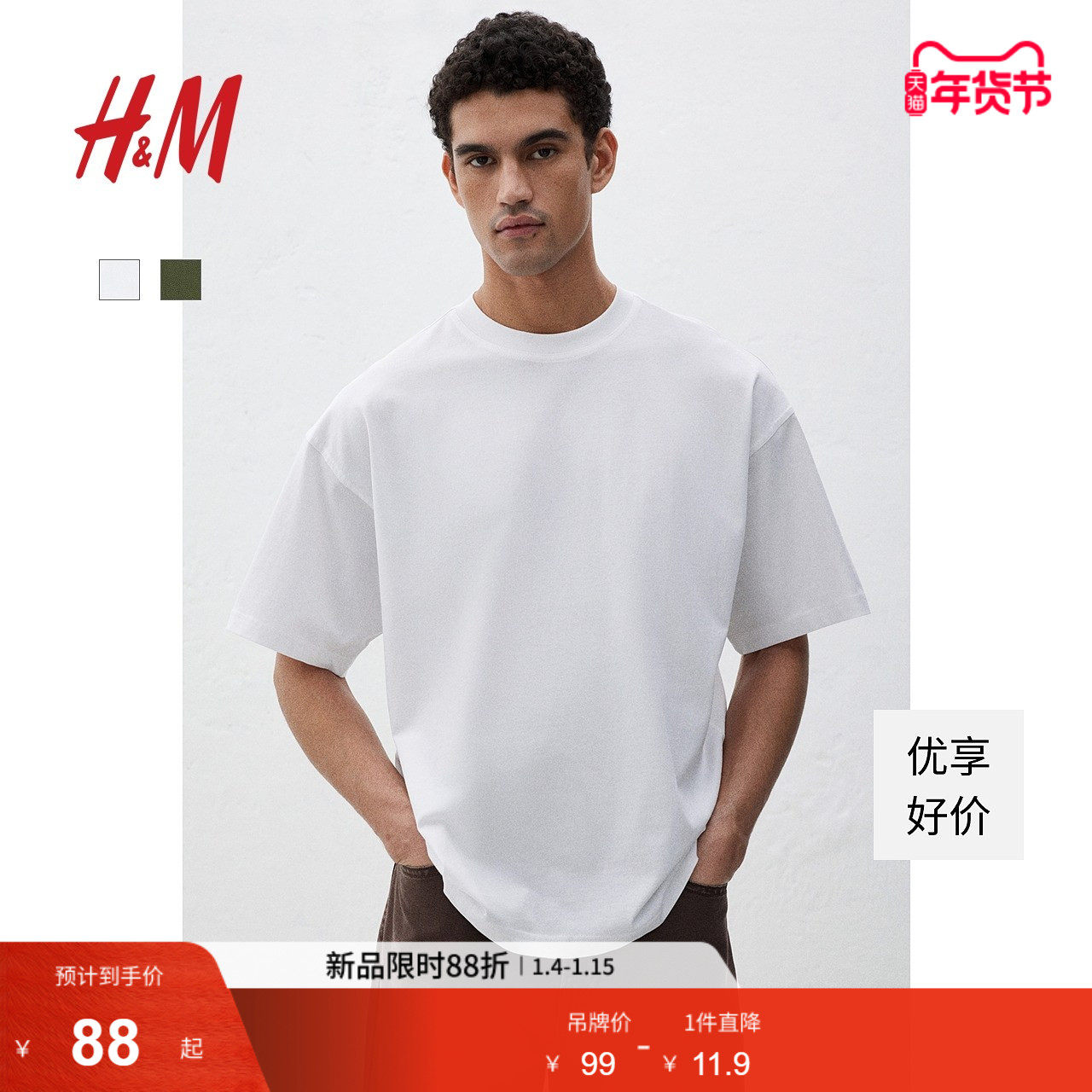 HM男装女装T恤冬季宽松美式休闲柔软圆领短打底衫情侣装1074658