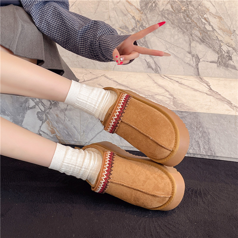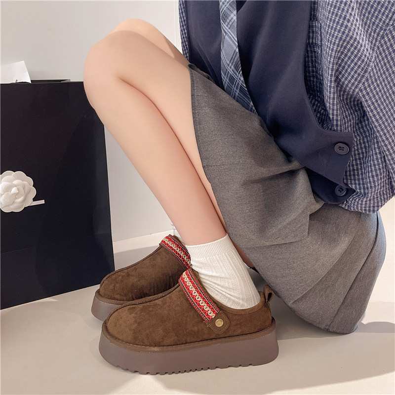 周雨彤同款厚底勃肯鞋女2025新款冬季加绒半拖鞋外穿增高穆勒鞋子