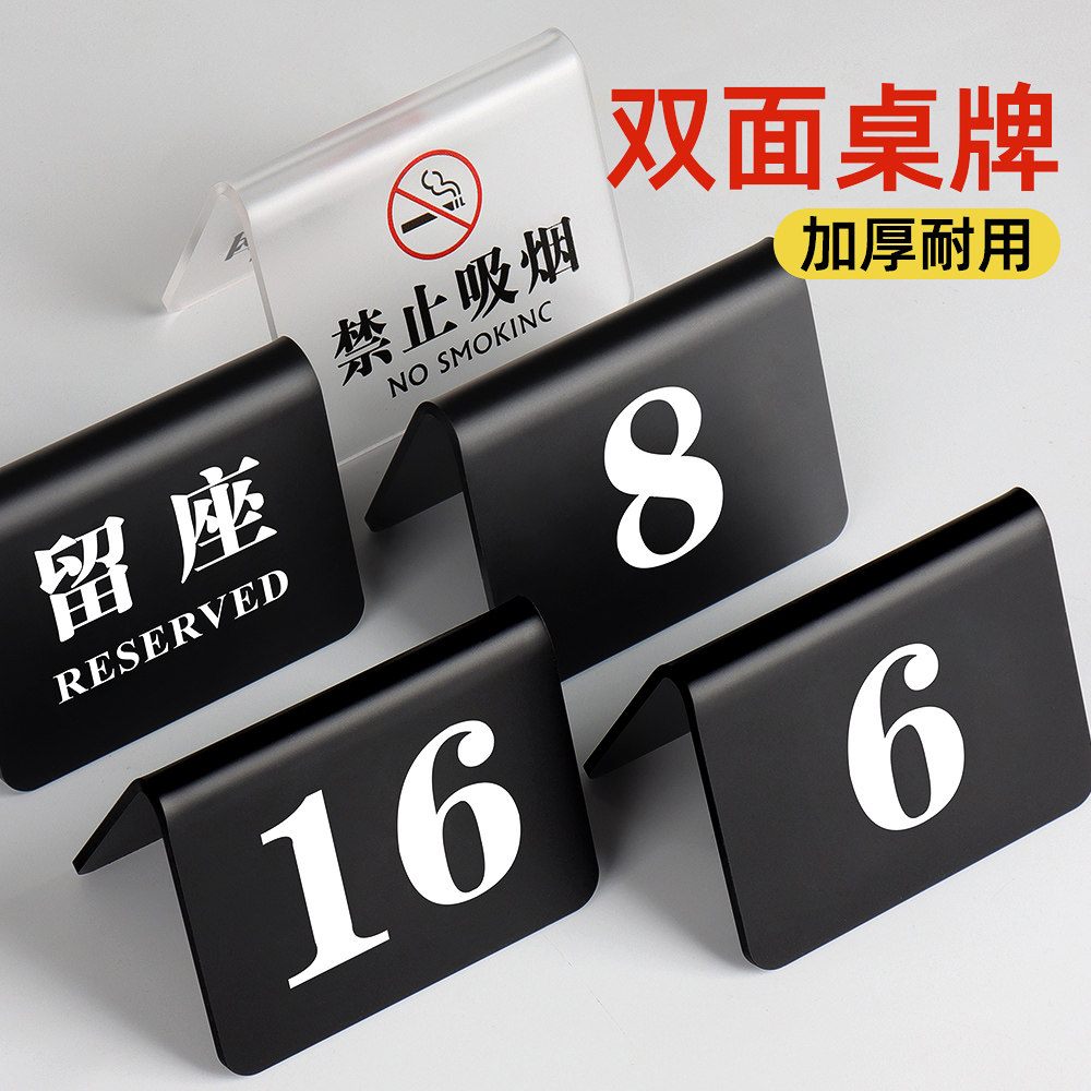 桌号牌立式留座位桌牌餐饮台号牌双面餐厅餐桌饭店台卡定制数字号码展示牌亚克力已预订排队等取餐标识牌制作