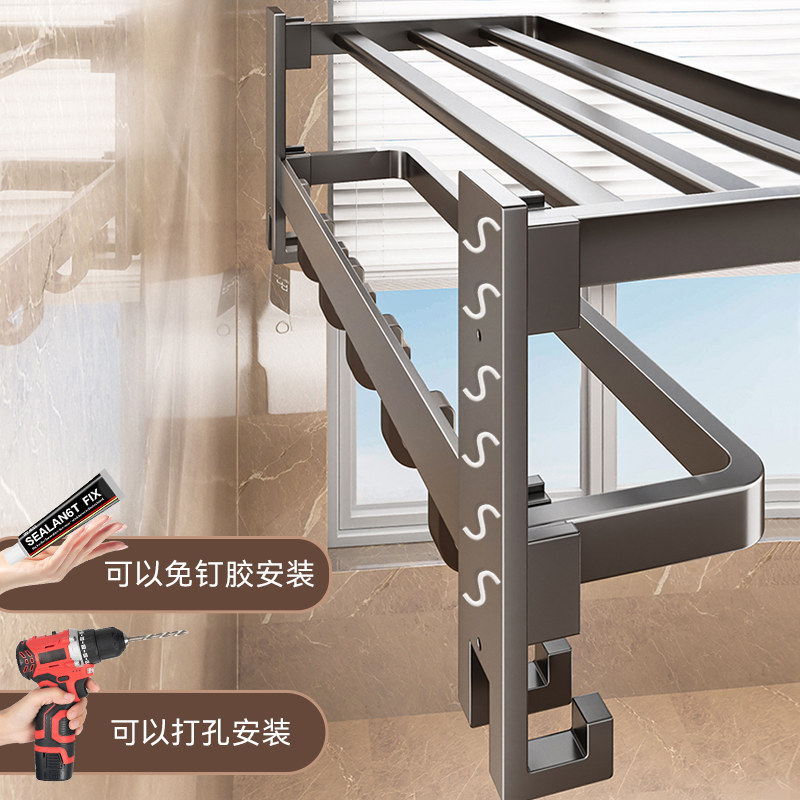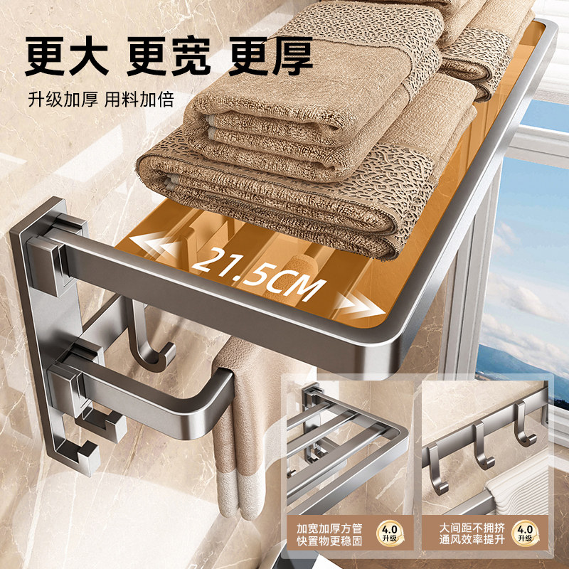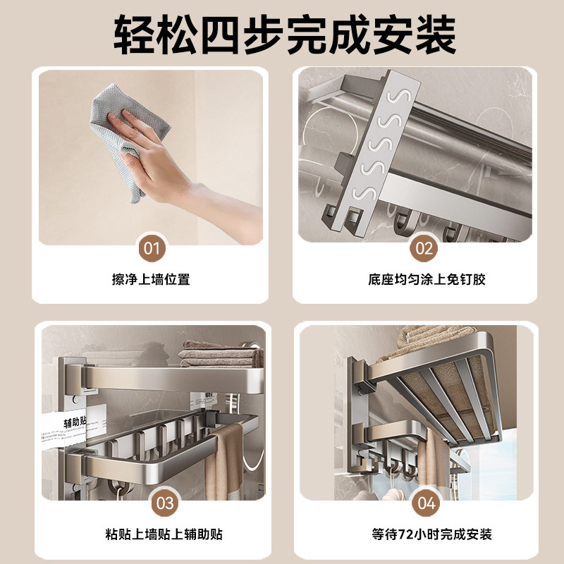 百悍毛巾架卫生间置物架免打孔浴巾架一体浴室厕所折叠架子好物